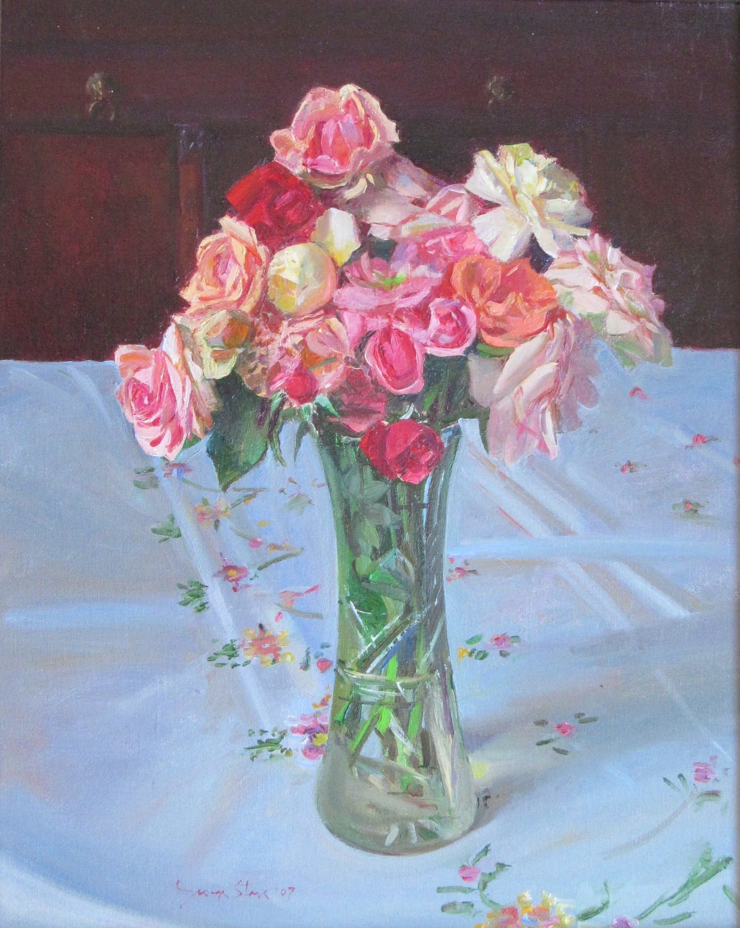 Nasturiums on a Chinese Hand Towel, 2008, o/l (2008.02)